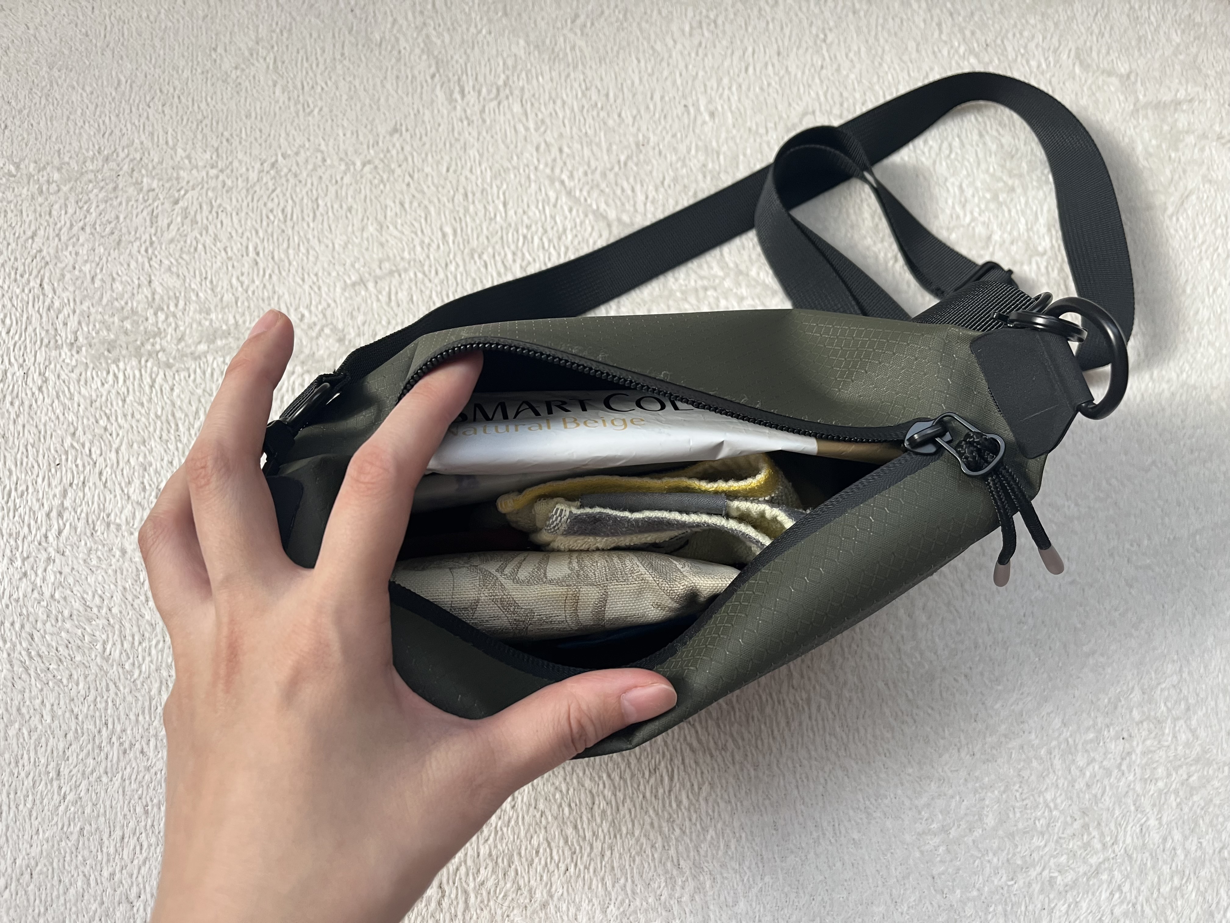 斜めがけで両手があいて、ほどよい量が入るバッグがほしかった!